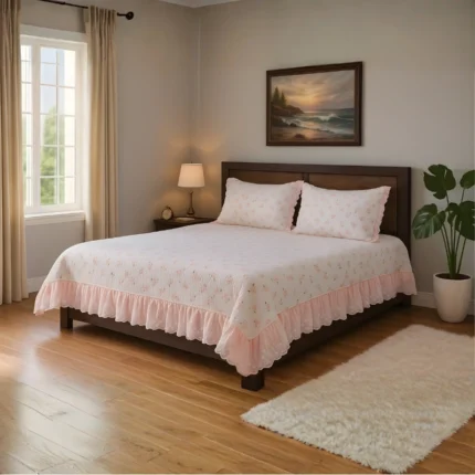 PRINTED BEDCOVER SET WITH LACE COTTON FEEL