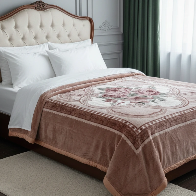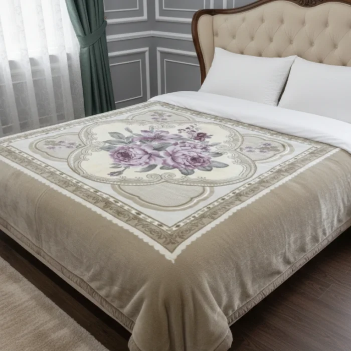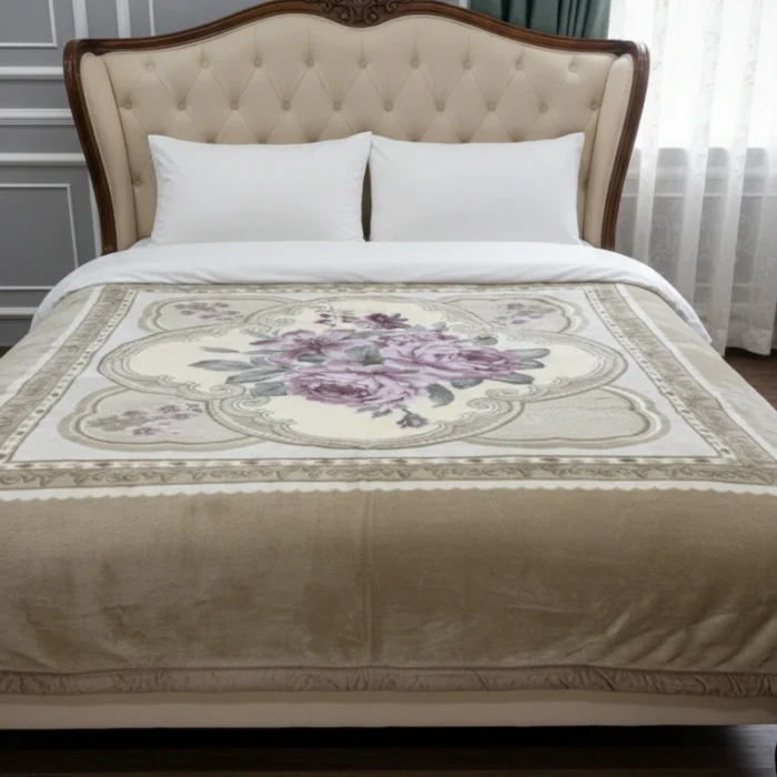 The blanket’s substantial weight of approximately 4 kg provides deep, enveloping warmth, ensuring comfort on chilly nights or when used as a weighted comfort layer. Its generous dimensions of 200 x 230 cm guarantee full coverage for double and king-sized beds, leaving no area exposed to cold. Each blanket is meticulously crafted with delicate floral embossing and classic bordered detailing, reflecting the precision and elegance of Japanese textile artistry.